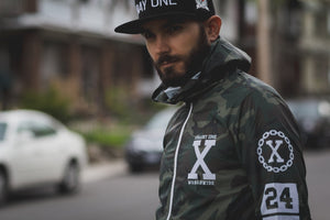 Thanks to the crew we have working with us, we got to design every aspect of the fabric before the windbreakers are even assembled. This includes the exact colors in the camo pattern (it’s actually two different matching patterns), and how the patterns are oriented. We then applied a handful of classic logos, as well as some new ones too.